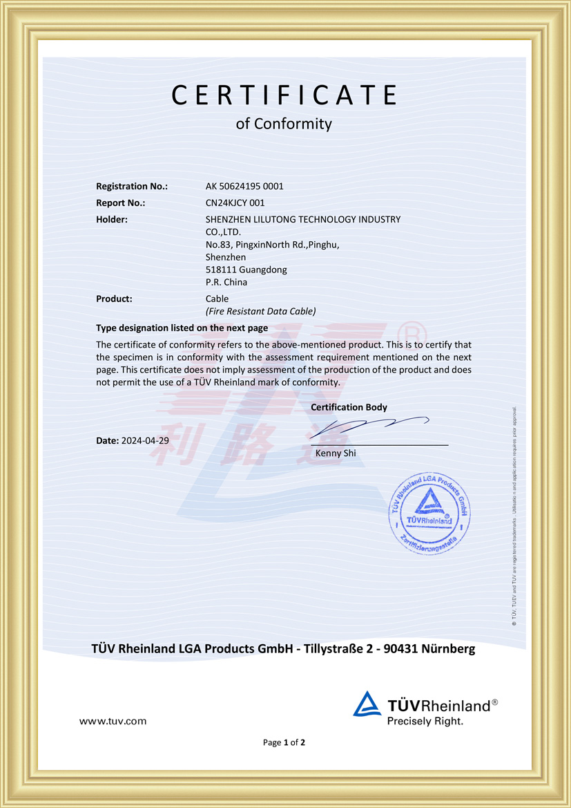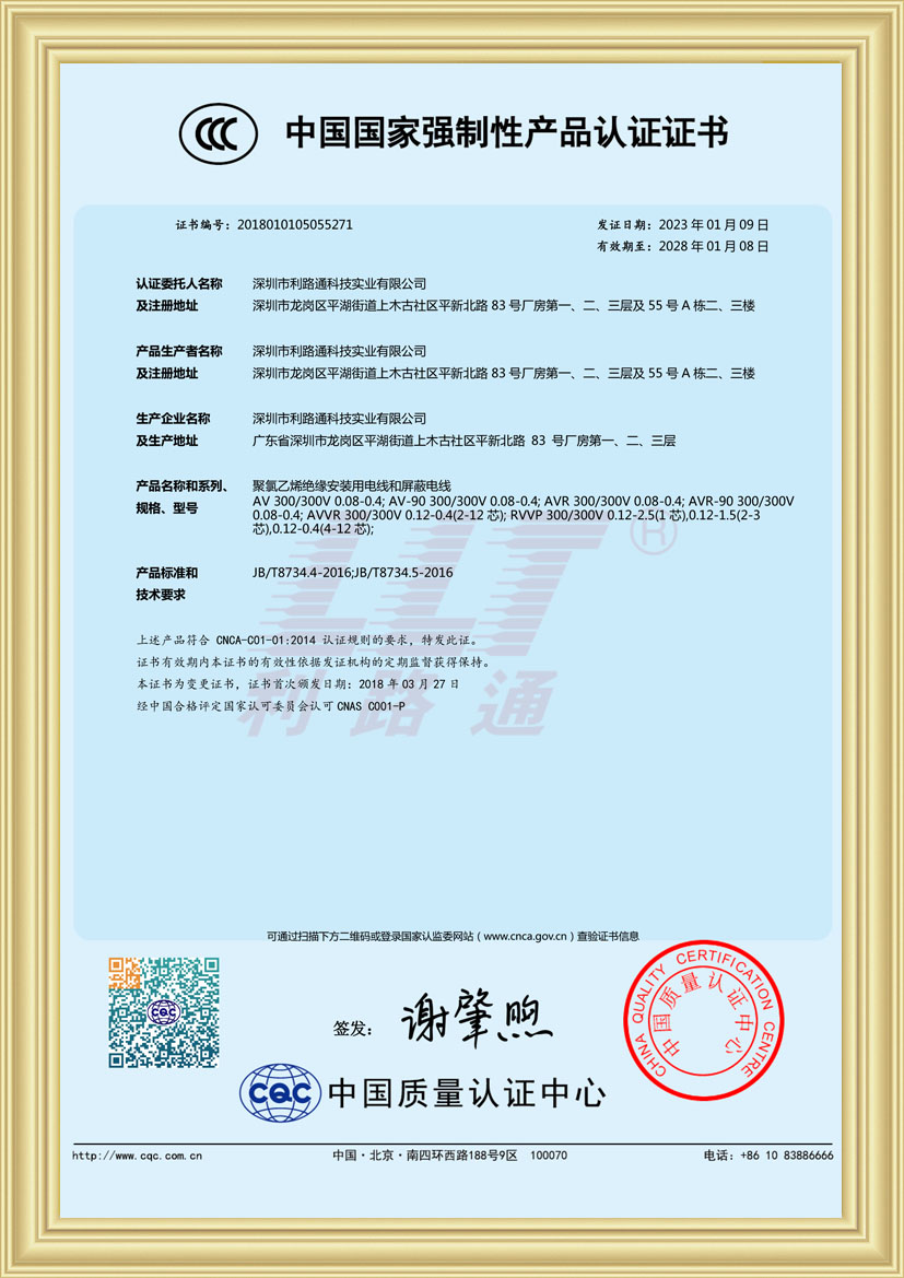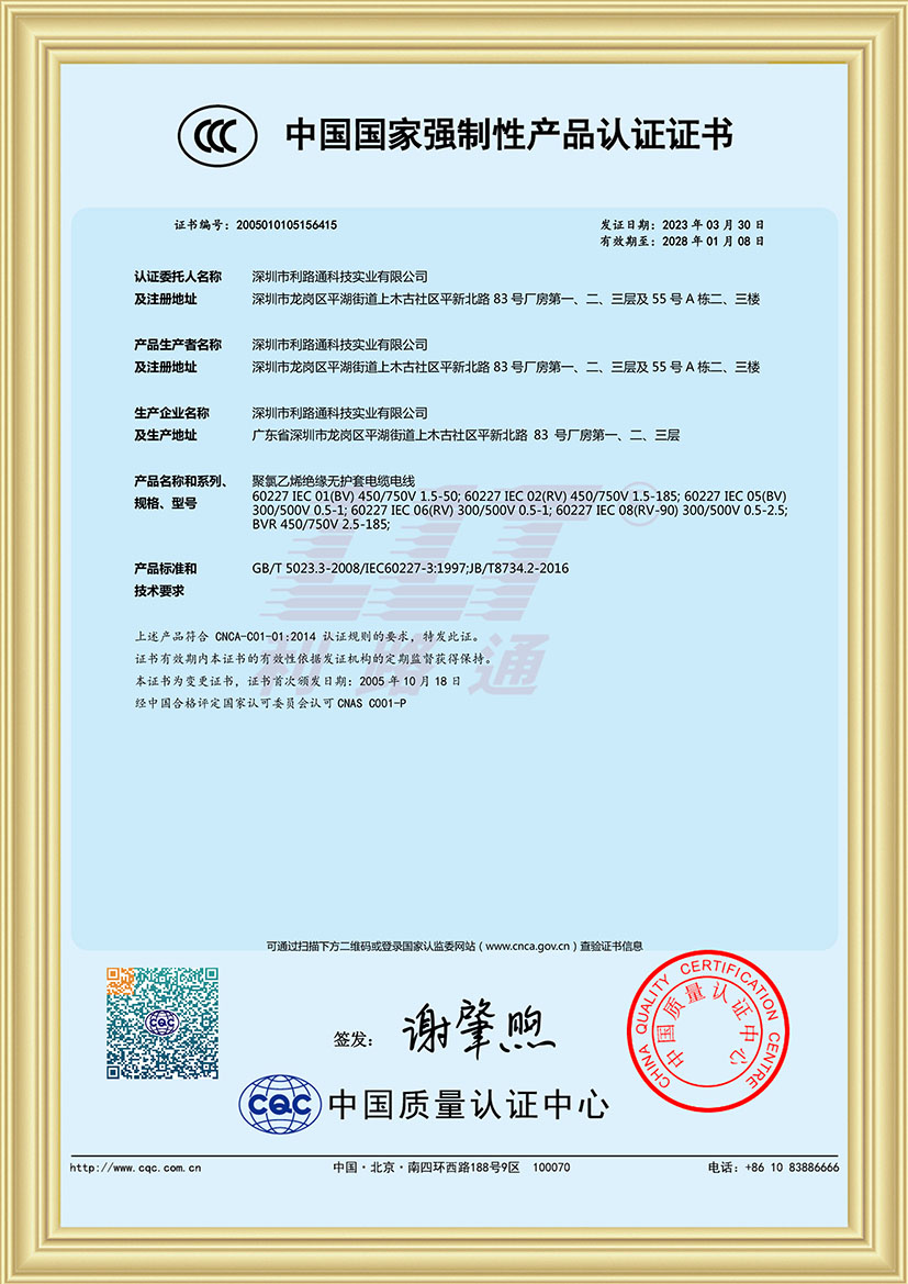 深圳市利路通科技實(shí)業(yè)有限公司成立于2001年,是一家主要從事防火線纜、硅膠線纜、橡膠線纜、低煙無鹵線纜、通訊線纜、漂浮線纜、耐寒線纜、控制線纜、柔性線纜、電梯線纜、機(jī)器人線纜、新能源專用線纜、光纖綜合線等全系列電線電纜的產(chǎn)品設(shè)計(jì)、研發(fā)、生產(chǎn)、銷售、工程方案銷售服務(wù)的綜合性企業(yè),產(chǎn)品廣泛應(yīng)用于消防與安防,通訊,新能源,太陽能,高層樓宇,軌道交通,橋梁,工業(yè)4.0設(shè)備,船舶,航空,軍工等領(lǐng)域并榮獲深圳高新技術(shù)企業(yè)、全國(guó)守合同重信用企業(yè)、深圳市愛心企業(yè)、深圳市消防安防百?gòu)?qiáng)企業(yè)、電線電纜協(xié)會(huì)理事會(huì)單位、國(guó)家一級(jí)計(jì)量體系合格企業(yè)、中國(guó)優(yōu)秀民營(yíng)科技企業(yè)。